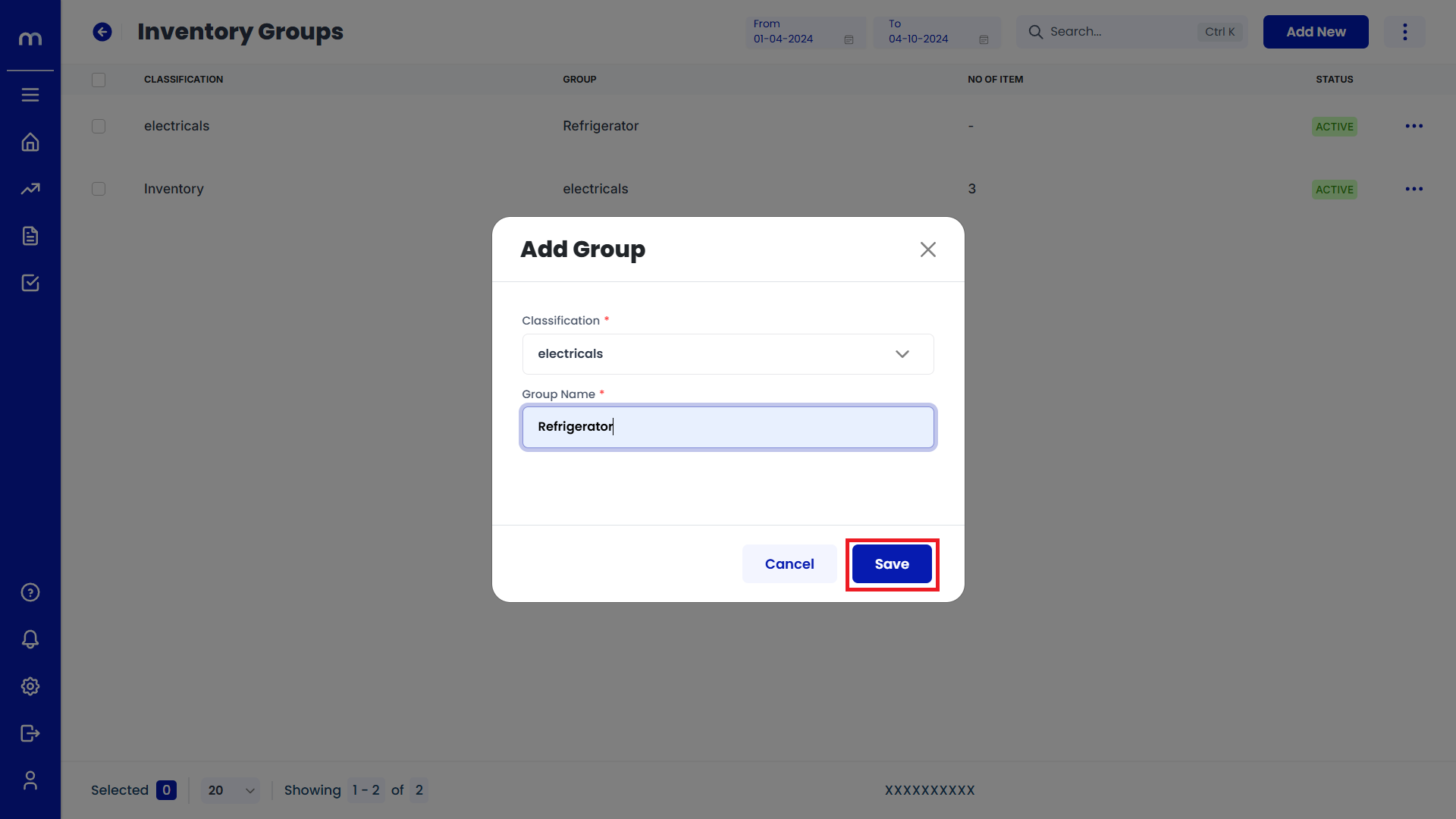 The Inventory Groups page will be displayed. Click on the Add New button.