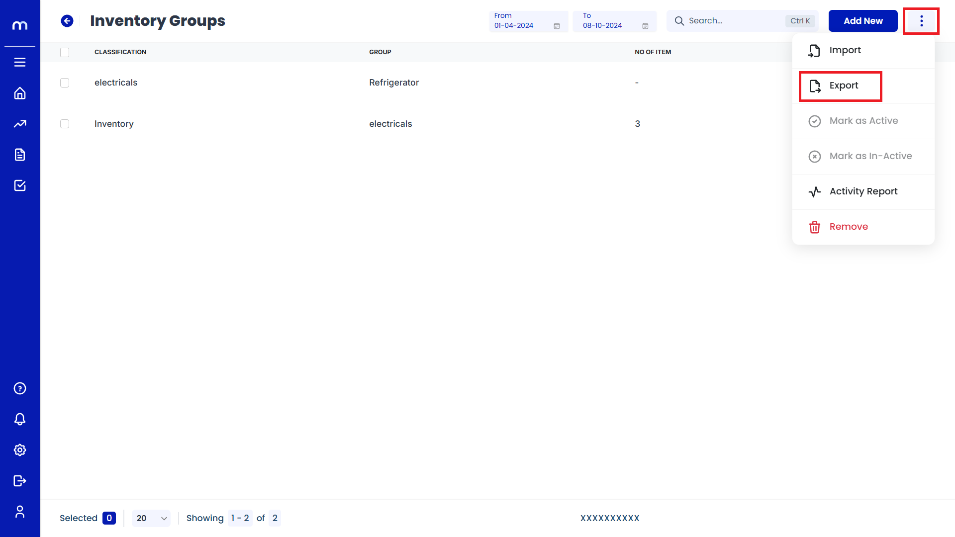 The Groups page will be displayed. Click on the Three Dots(⋮) button in the top right corner and then click on the Export button.