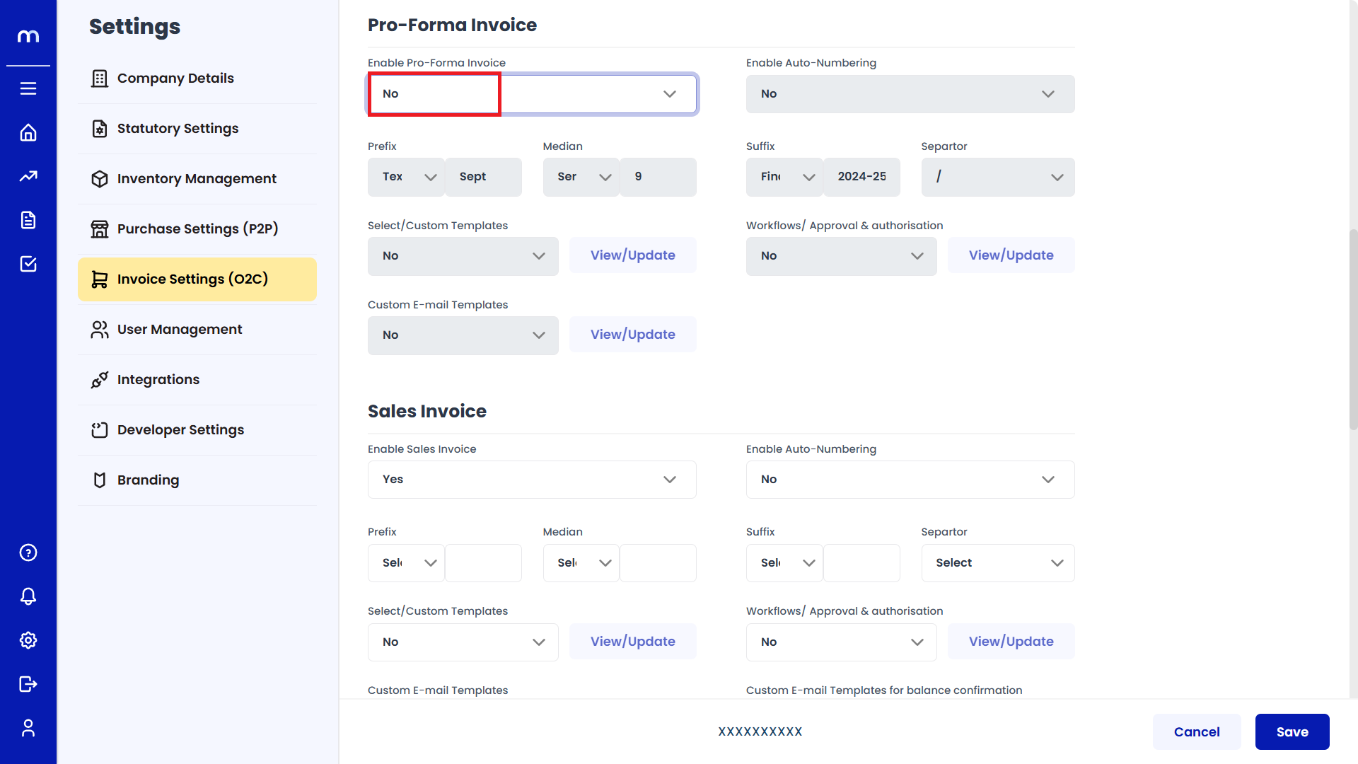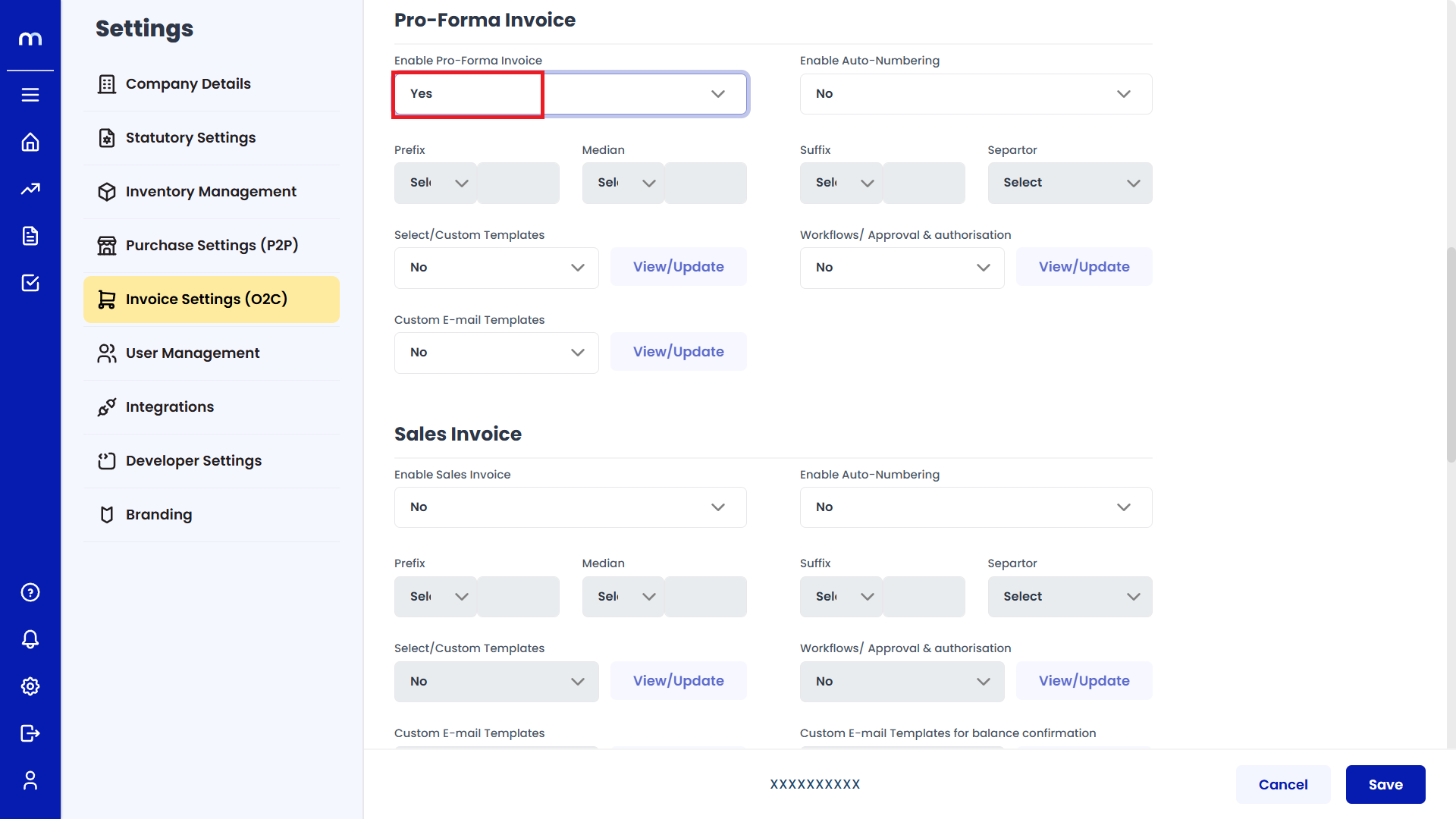 Click on the dropdown next to Enable Pro-Forma Invoice and select Yes.