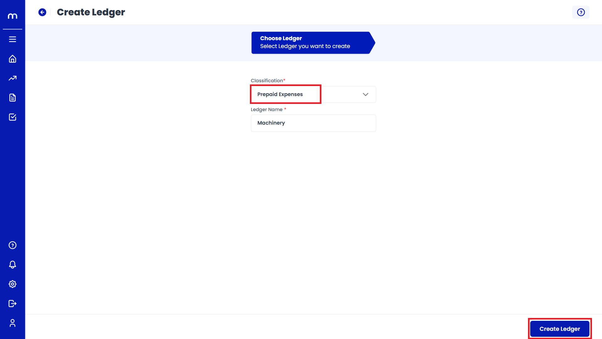 ResourcesinLedgersPrepaid ExpensesCreate a Prepaid Expenses Ledger Create a Prepaid Expenses LedgerIn the new window, select Prepaid Expenses Ledger and fill in the required details such as Ledger Name and click on Create Ledger successfully.Plant & MachineryProperty Plant & Equipment